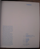 The last catalog I found was called "For The Love Of Vinyl, The Album Art Of Hipgnosis". It was a showcase for, as the title helpfully states, "album art of Hipgnosis", which is (or was) a design company that did allot of classic album covers for classic rock bands such as Black Sabbath and Pink Floyd. The Typefaces used are mostly Sans-Serif for the titles and subtitles and the like, while a Serif was used for the body text. This is another case where the text is made to resemble the typeface used on albums. This connection can be most clearly seen on the table of content's page, with starts of with a "Side One" and then procedes to list the chapters, all of which echoes the song labels on album covers. The table of contents is actually the most interesting part of the design to me, carrying the theme that interested me in the other two catalogs to the extreme.